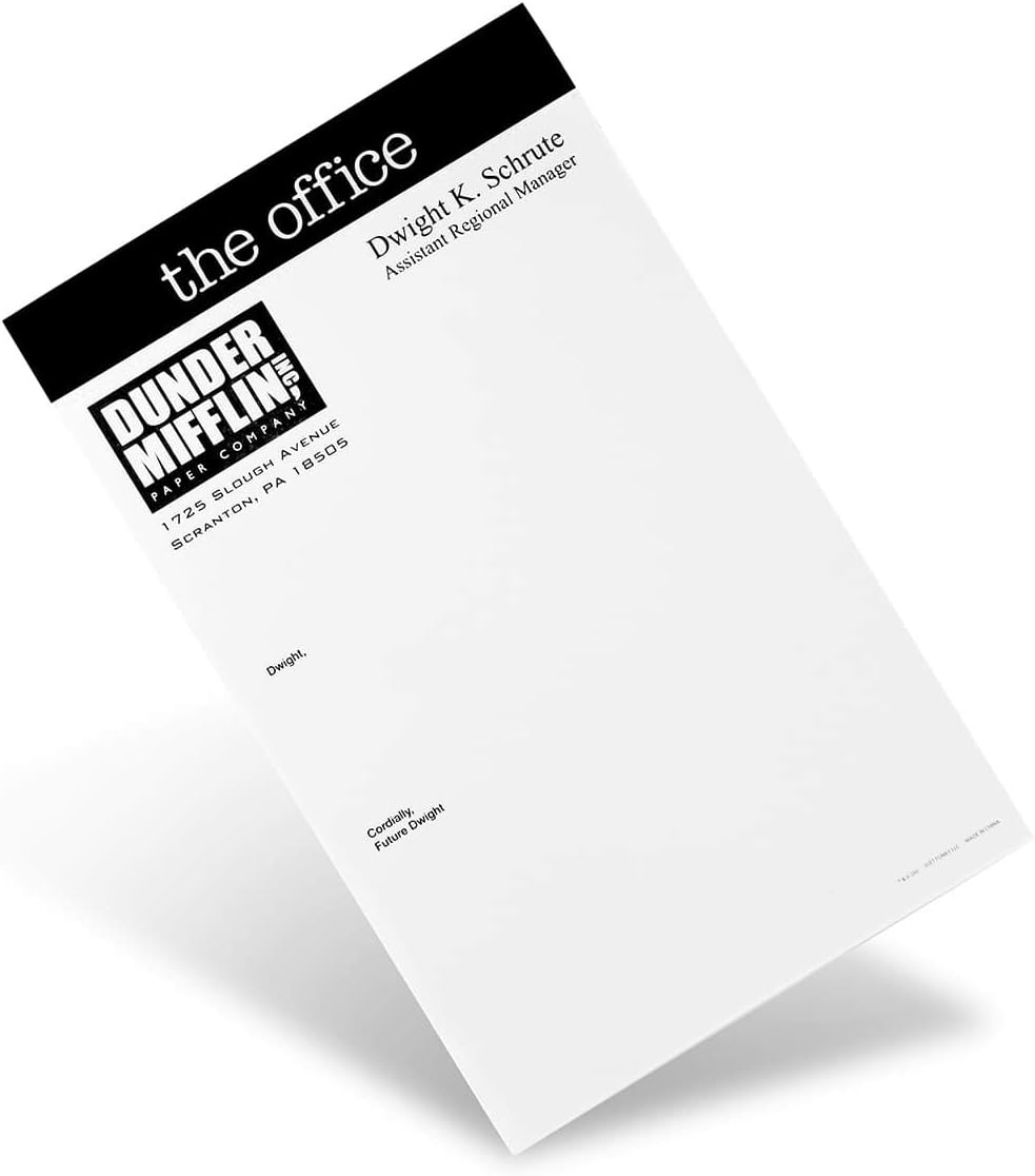 The Office Dear Future Dwight Notepad - Novelty 5x8 Inch 50 Pieces Memo Pad - Dwight K Schrute Blank Memo from Dunder Mifflin Paper Company Work Home School
